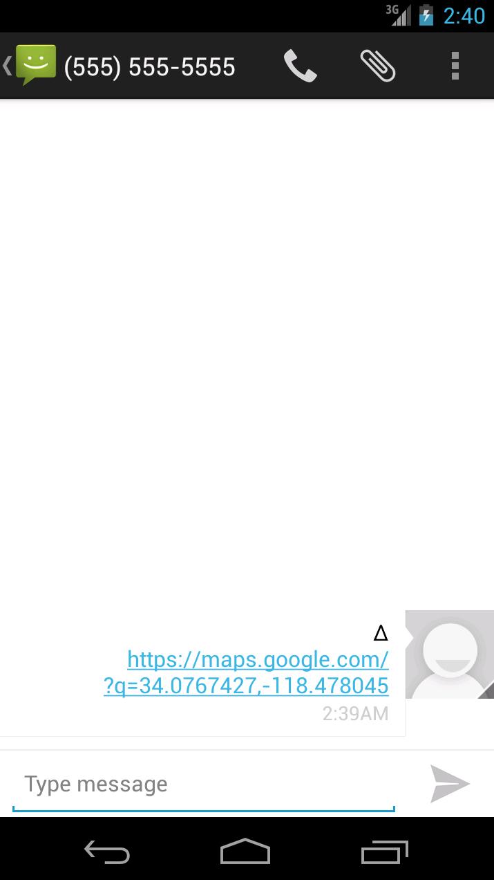 Pressione um botão e uma mensagem de texto será composta com um link para o Google Maps identificar seu local exato. Envie este texto para seus amigos e eles podem navegar para você no momento em que o recebem.